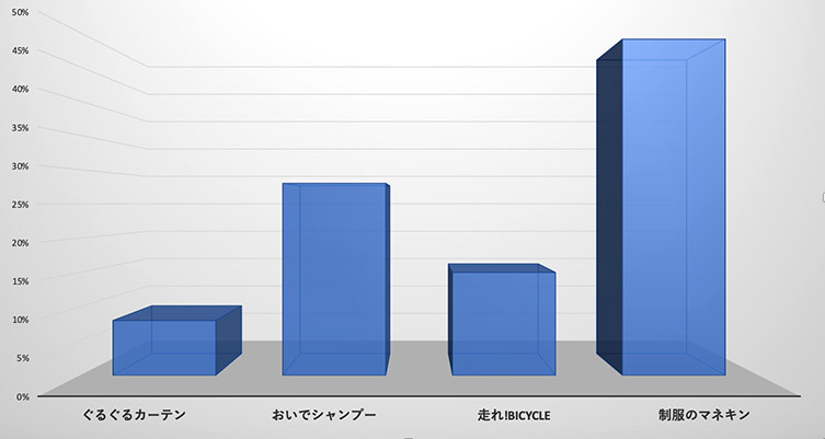 この棒グラフは右端の曲の時代で区切ったファン総数を分母とし、該当曲でファンになった方の数が分子ですので、仮に『インフルエンサー』や『シンクロニシティ』の時点で比較すれば『マネキン』も背の低いグラフになると推察できます。