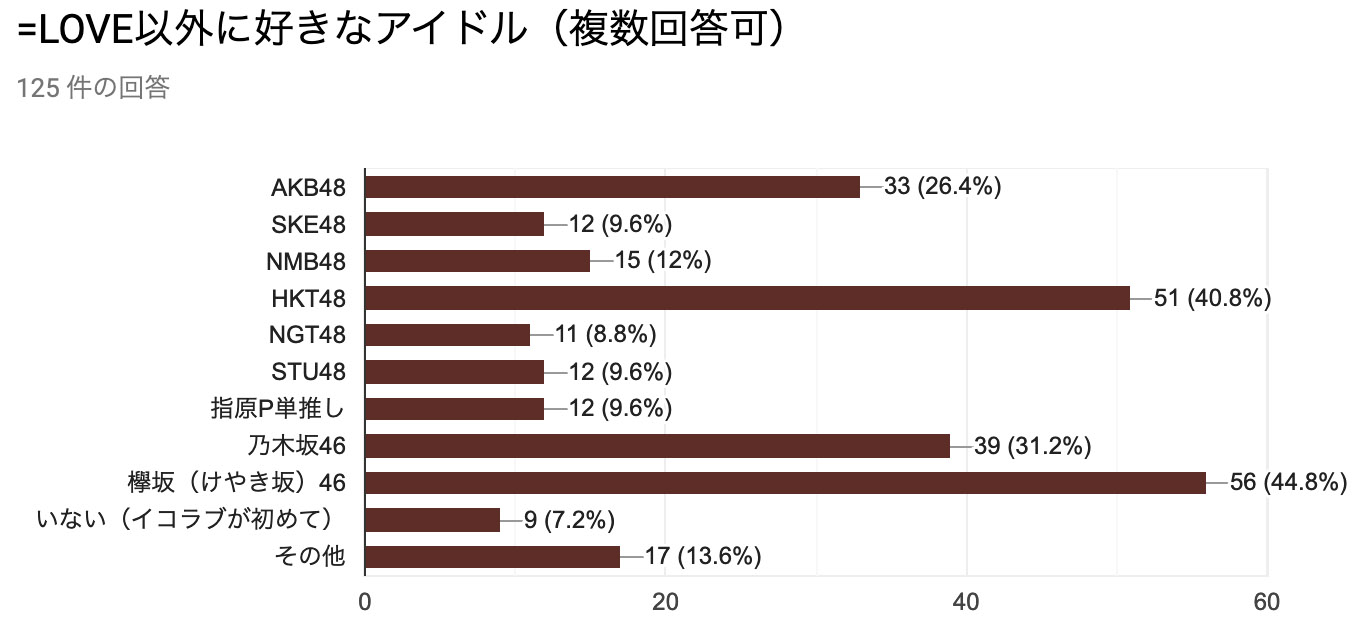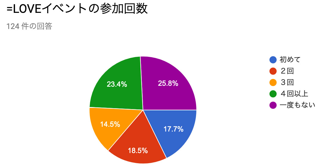 アンケート内容としては、年齢を含め、個人情報は一切収集しないように配慮しつつ、「好きになったきっかけ」に加え、他グループからの推し変が多いと予想していましたので、「=LOVE以外に好きなのは?」という選択肢を用意。「以前はどこのファンでした?」という過去形の問いは、元グループさんにも失礼だし、お洒落じゃないんで、落とし所をさぐっての設問となりました。