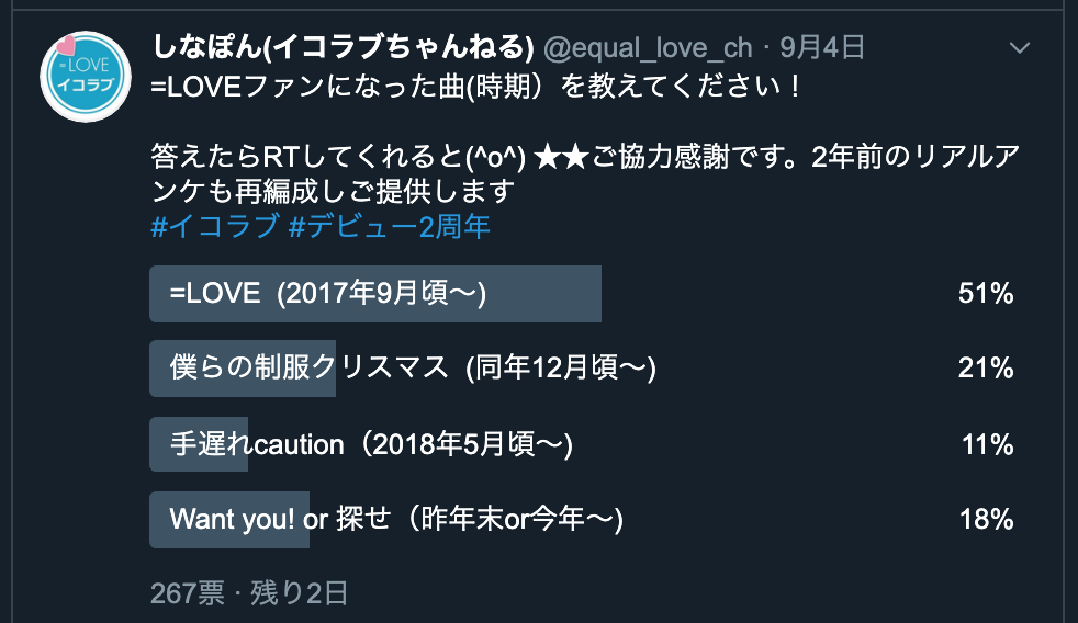 さて、ここからは『=LOVEファン様へのアンケート』(2017年9月末〜12月初旬に実施)を振り返ってみたいと思います。